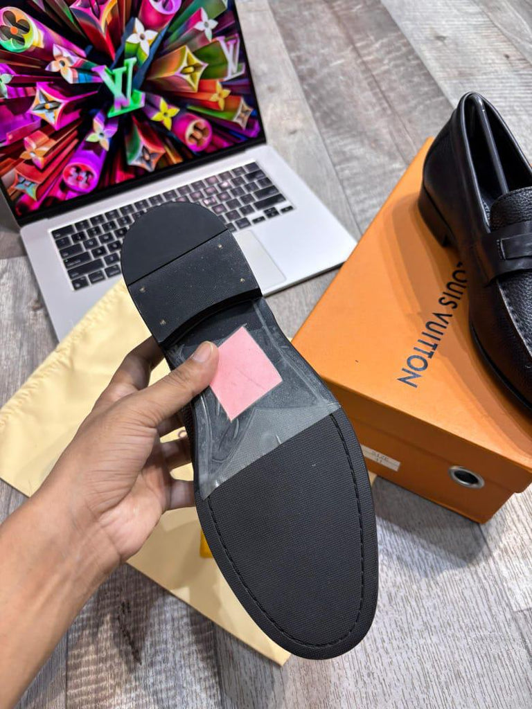 Refined and sophisticated, these premium black leather loafers are crafted for the modern gentleman who values both style and substance. Featuring a sleek silhouette, smooth grain leather, and a bold metal hardware accent across the upper, these loafers are the perfect balance of luxury and everyday wearability.