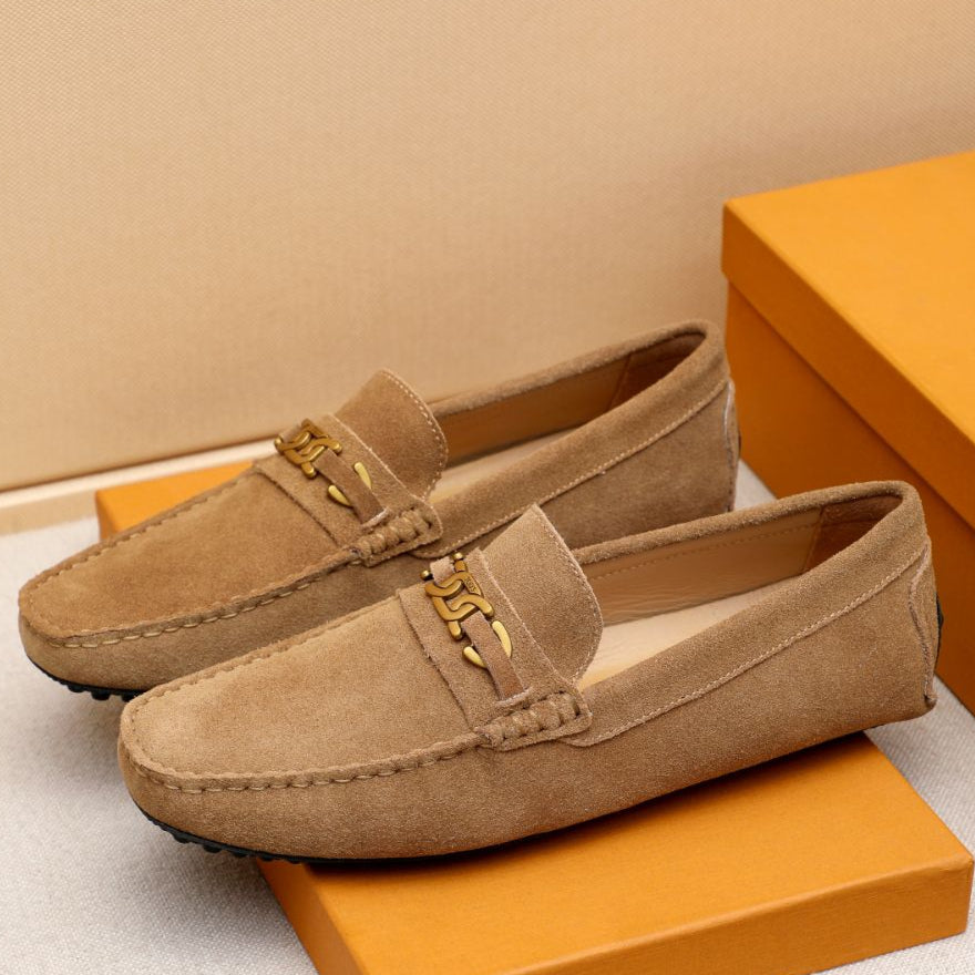 Premium Brown Suede Driving Loafers with Gold Chain Accent