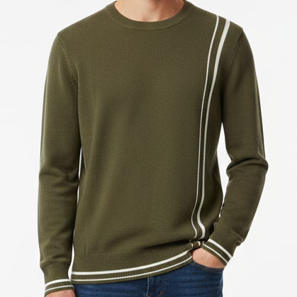 Men’s Olive green Designer Sweater with Contrast Stripe Detail