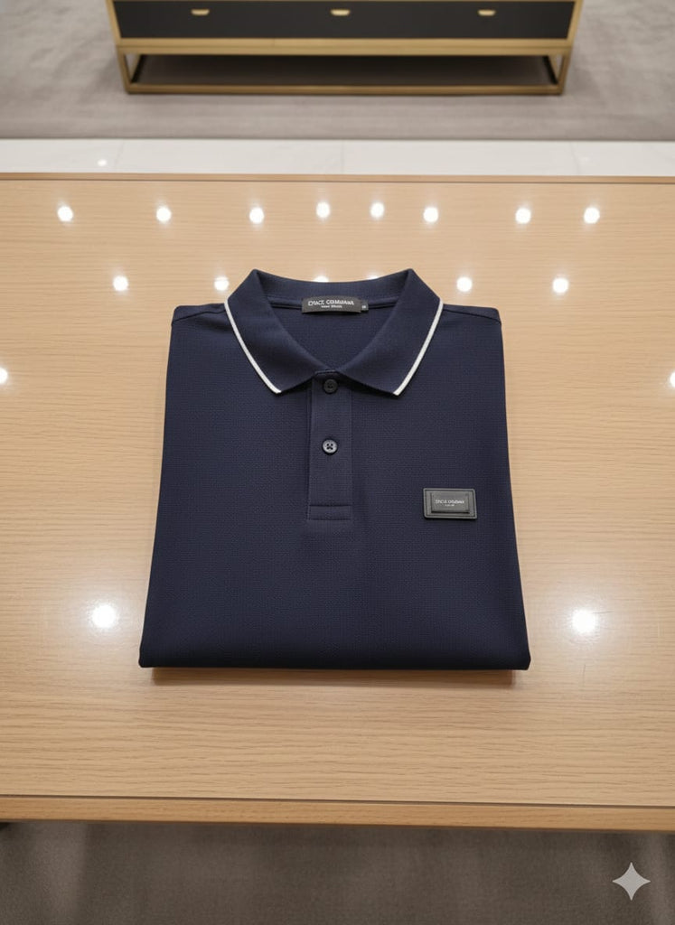 Premium Navy Blue Polo T-Shirt with Contrast Piping