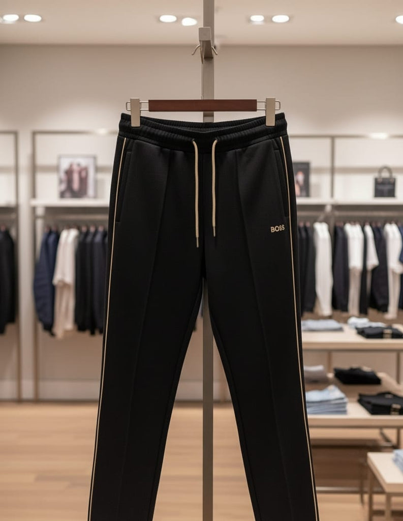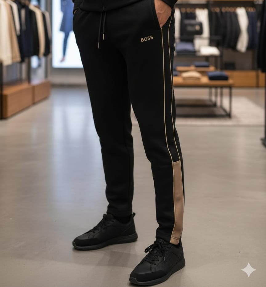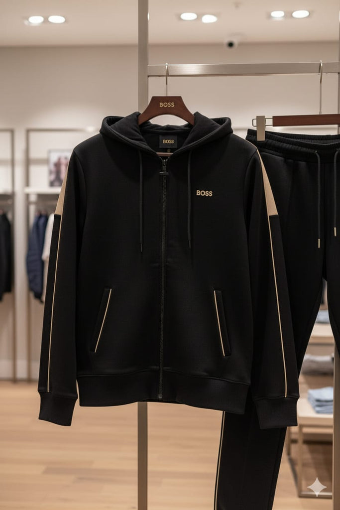 Branded Black Tracksuit with Beige Side Stripes