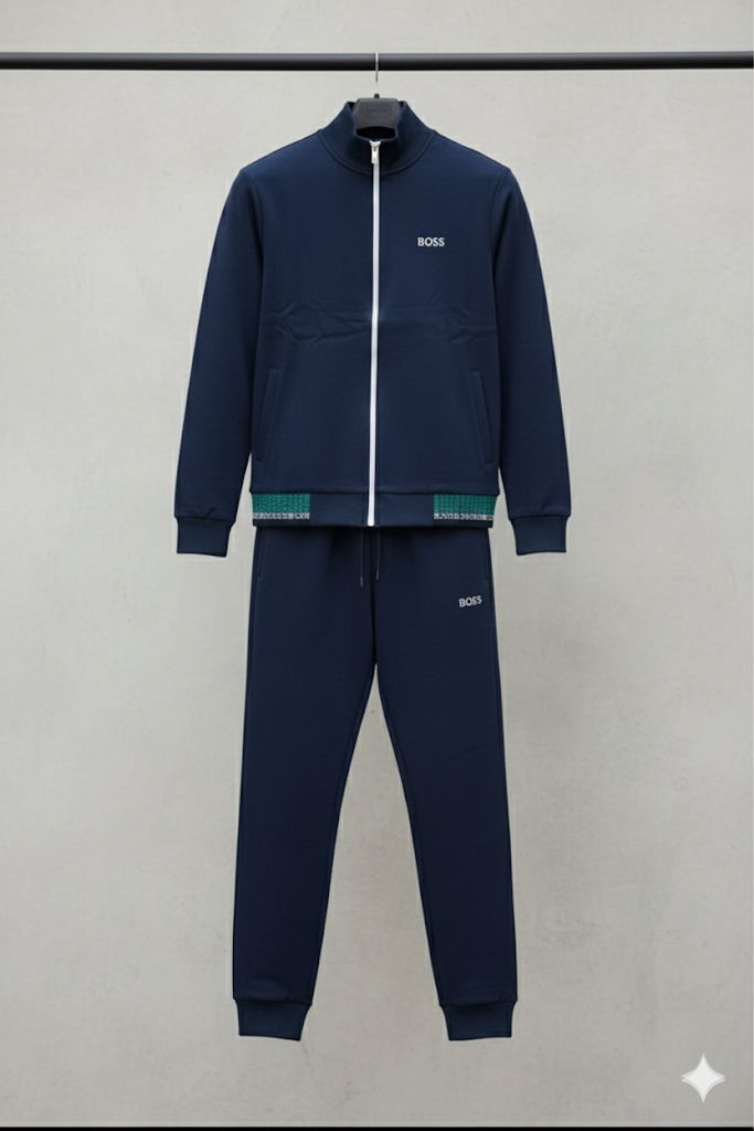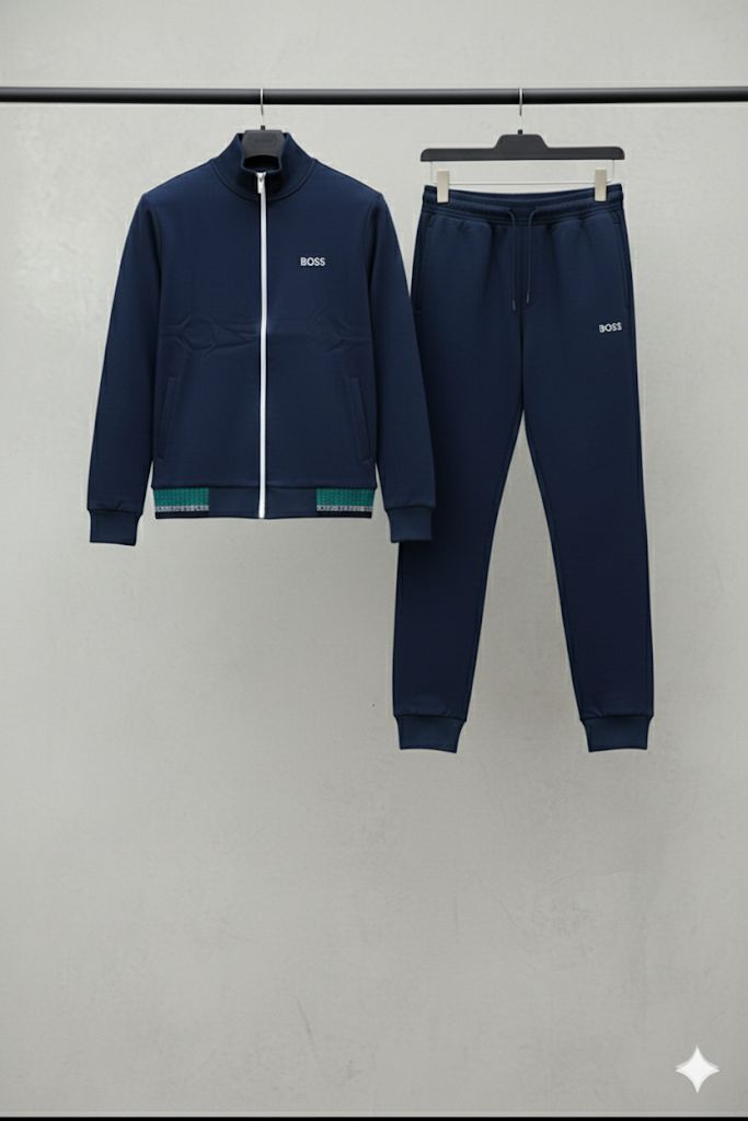 - Branding on the jacket and joggers, keeping the look premium yet understated