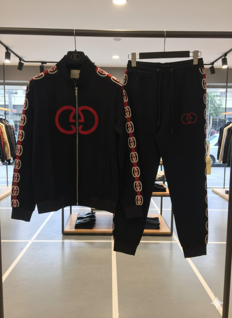 Men Premium Tracksuit – Black with Red Emblem Detailing