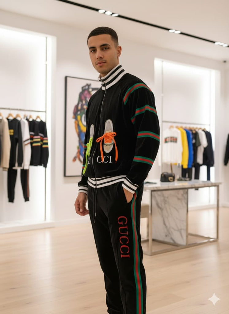 - A clean and stylish tracksuit that stands out.