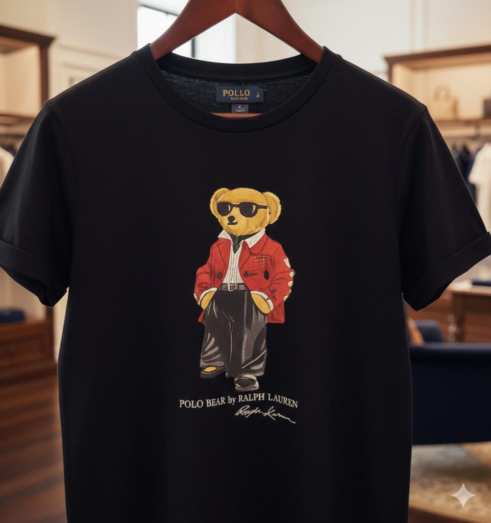 Luxury Black Polo Bear Graphic T-Shirt For Women
