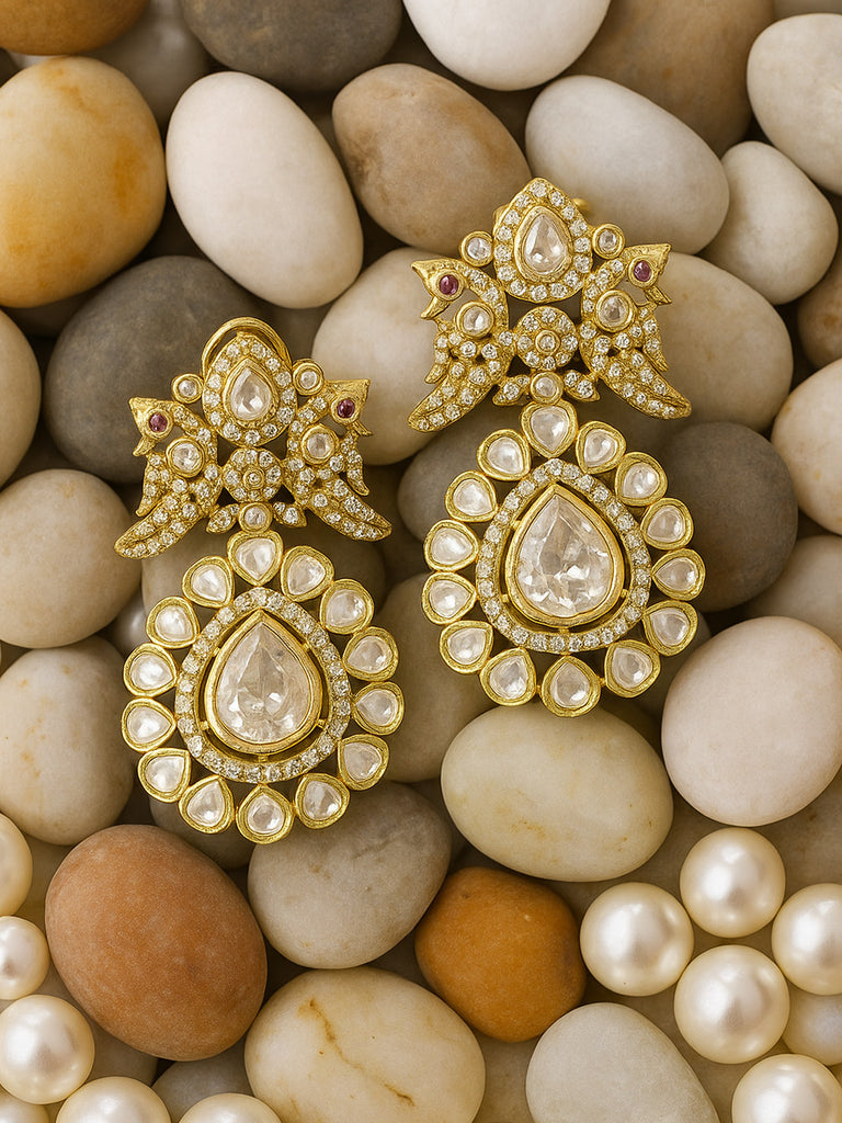 - High-shine Polki-style stones with Moissanite sparkle make the necklace look luxurious.