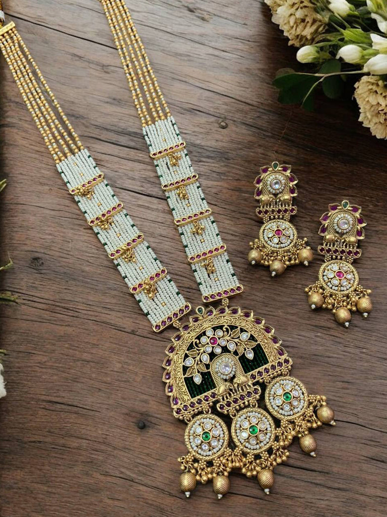 Royal Rajwadi Long Necklace Set with Premium Golden Plating