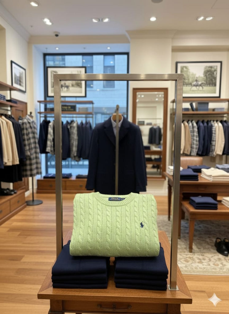 Branded Men’s Classic Green Cable Knit Sweater