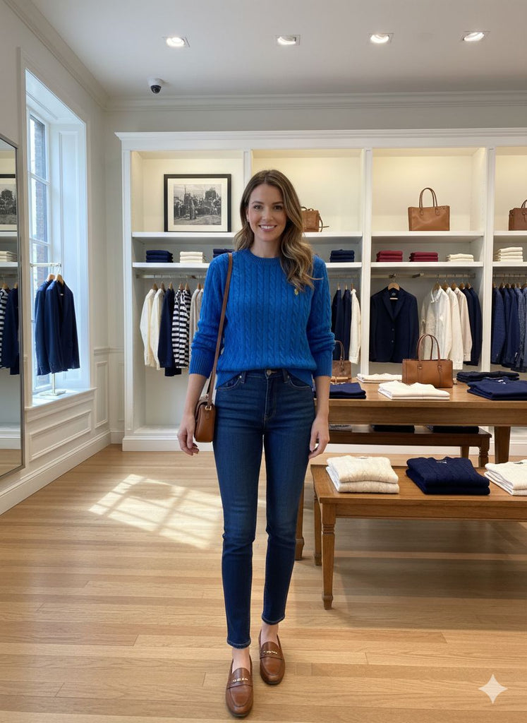 Elegant Premium Blue Classic Cable Knit Women Jumper