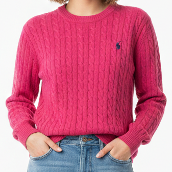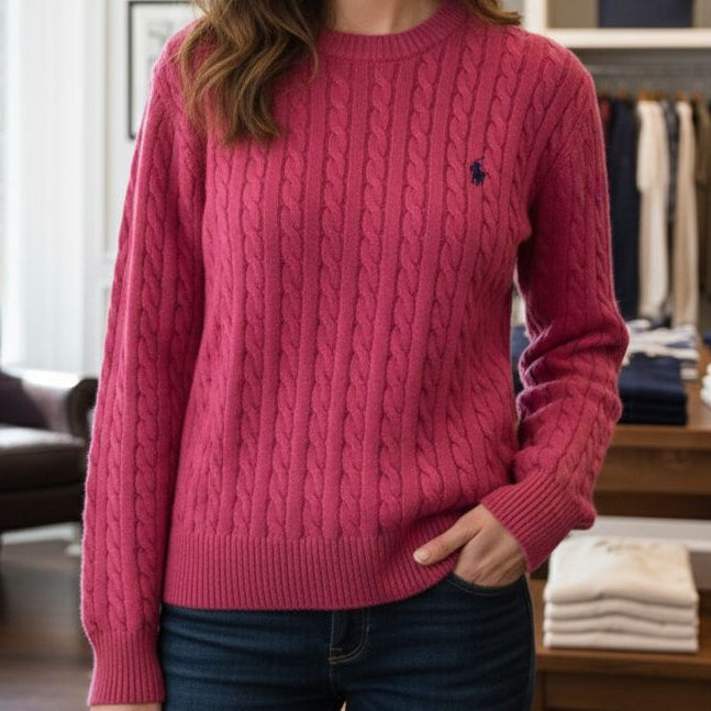 Elegant Rose Pink Cable Knit Sweater for Women