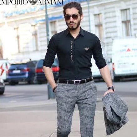 Premium Logo Printed Drop Shoulder Shirt With Cuban Collar