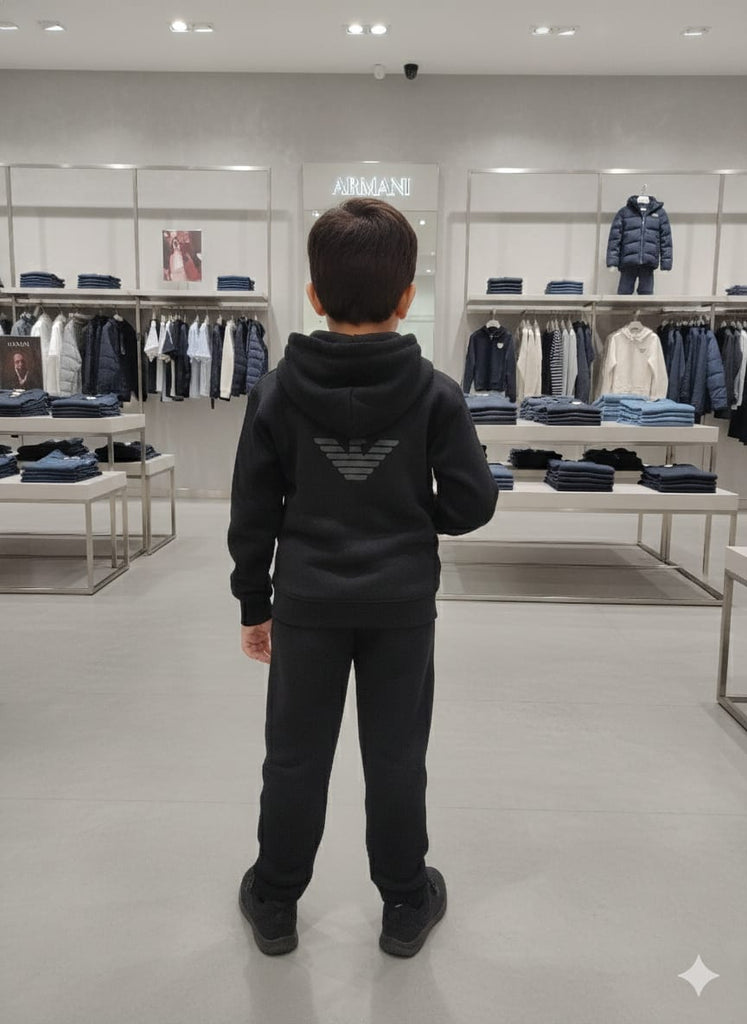 Kids Black Hooded Tracksuit Set Zip-Up Hoodie & Joggers