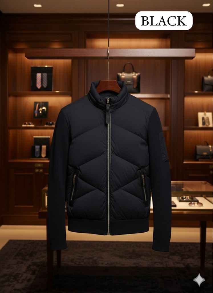 Black Quilted Zip-Up Jacket with Sleek Modern Design