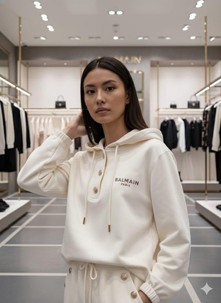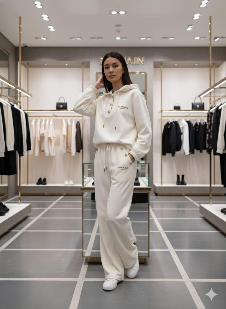 Elegant Cream Track Set with Gold Button Accents Premium Casual Wear