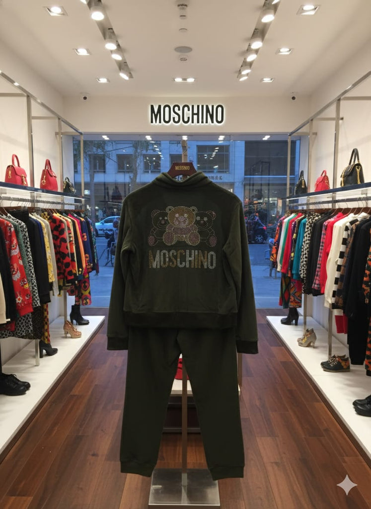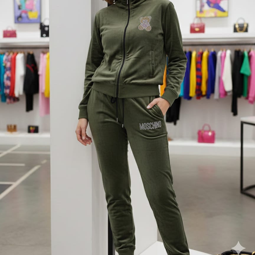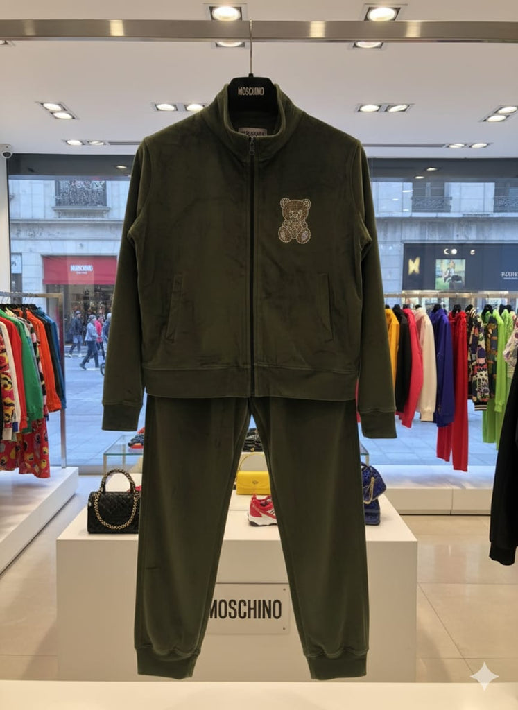 Moschino Olive Green Teddy Logo Tracksuit for Cozy Casual Style