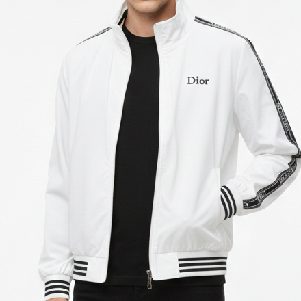 Luxury Black Brand Signature Track Jacket with Logo Tape Sleeves