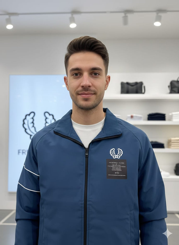 Men’s Blue Casual Zip-Up Jacket with Ribbed Hem