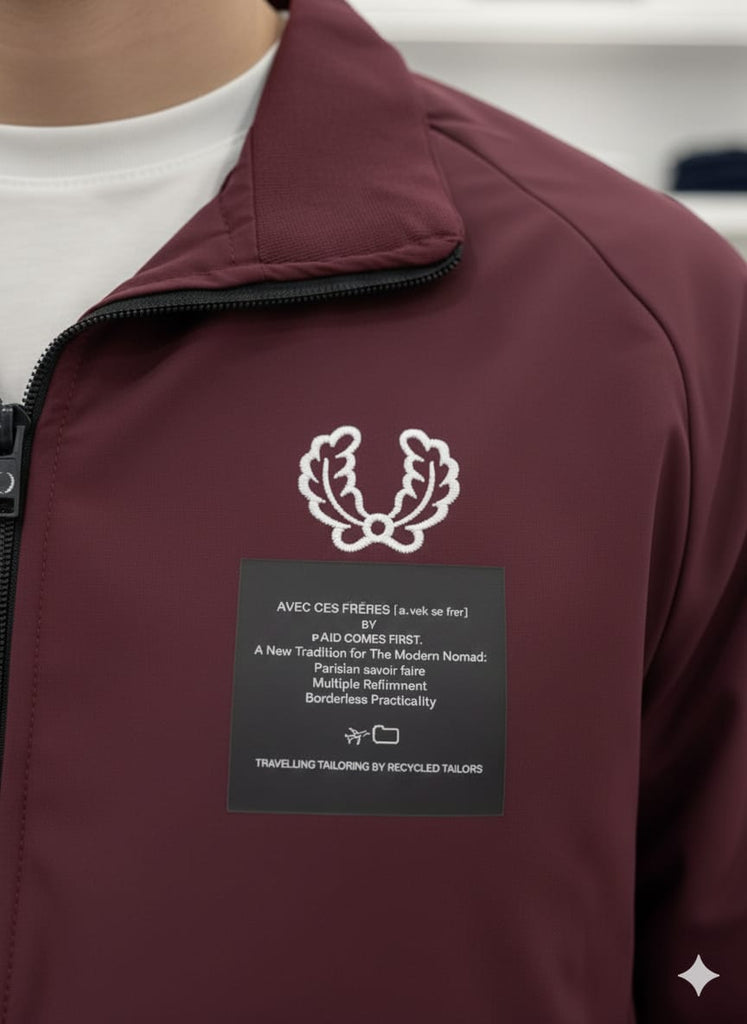 Men’s Maroon Zip-Up Casual Jacket with Ribbed Hem