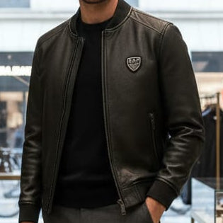 Men’s Premium Black Leather Bomber Jacket Classic & Stylish Look