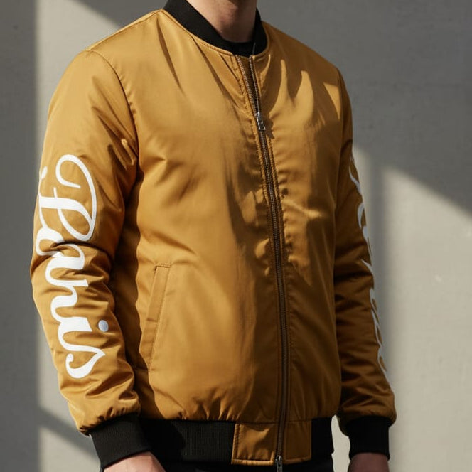Men’s Stylish Brown Bomber Jacket with Logo Sleeves