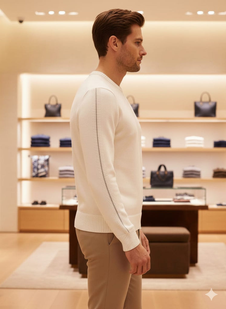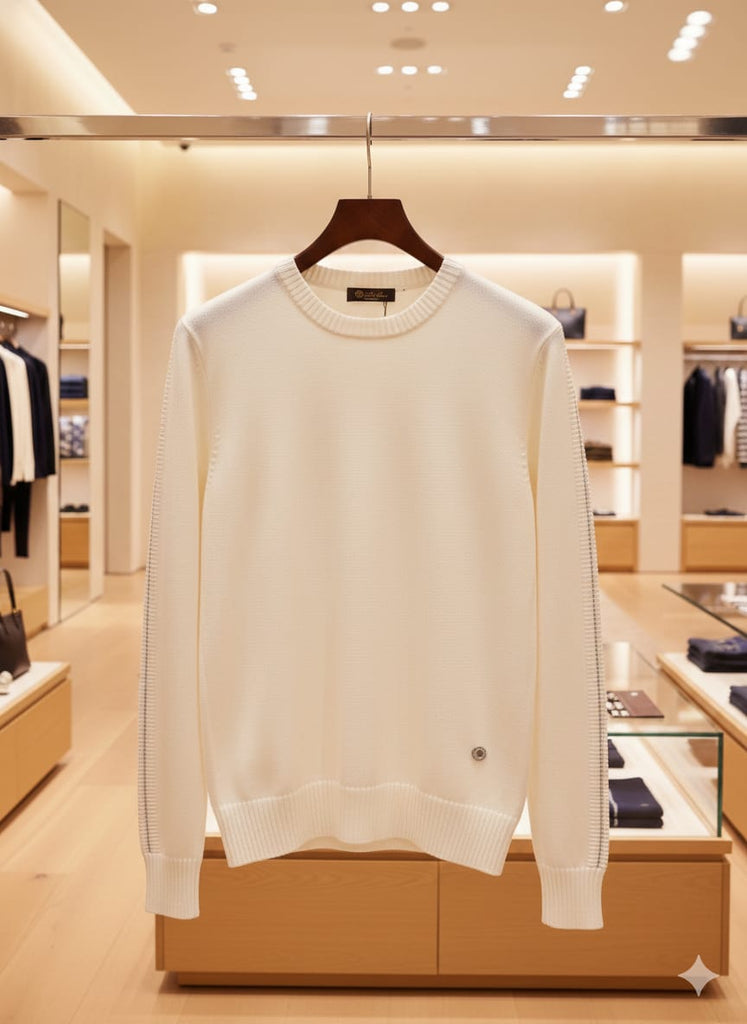Classic Solid White Crew Neck Sweater Premium Winter Essential