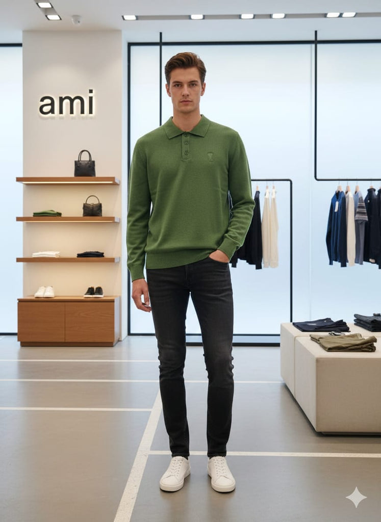 Imported Brand Green Polo Knit Minimal & Premium Everyday Wear Pullover