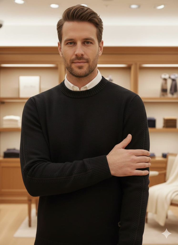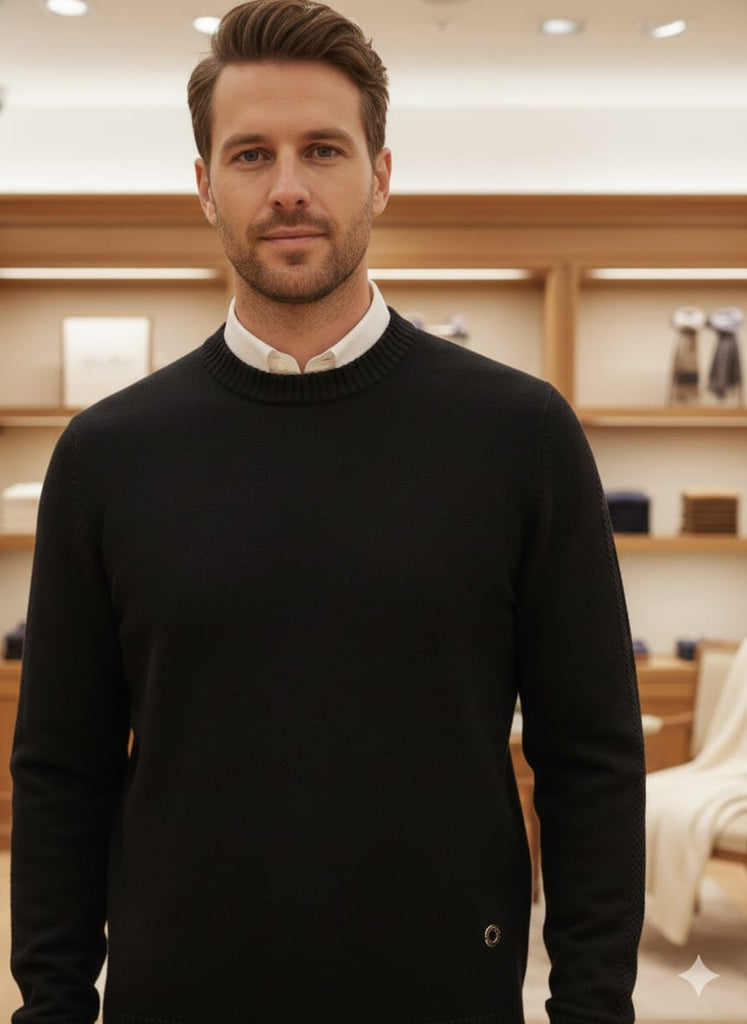 Premium Black Classic Round Neck Sweater – Elegant & Timeless Style