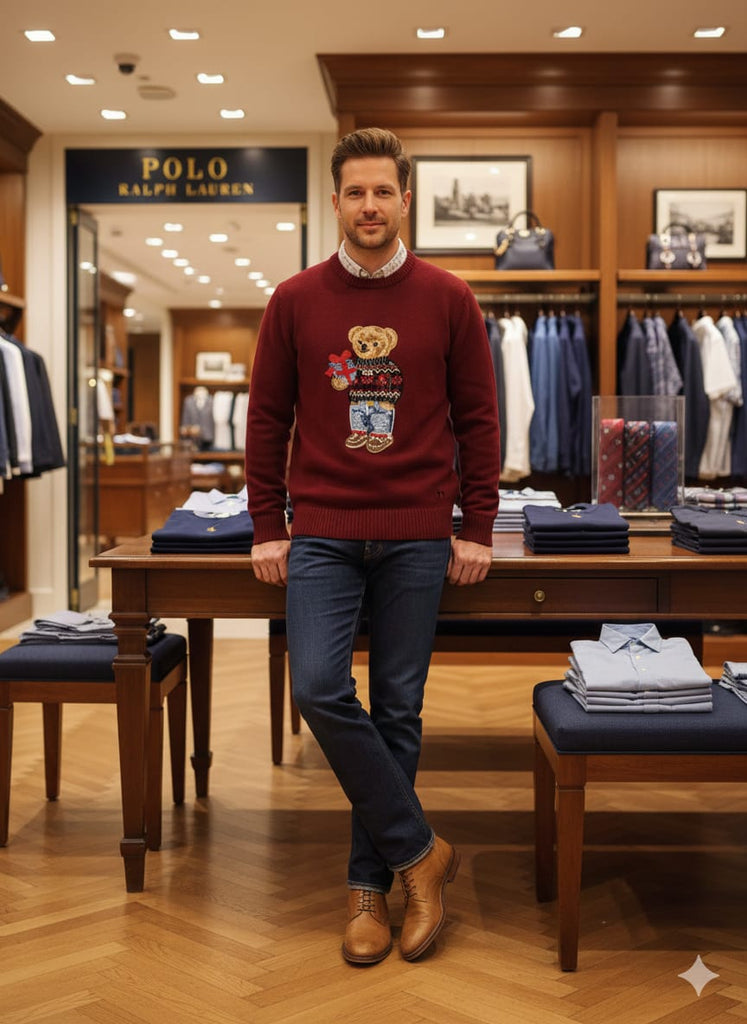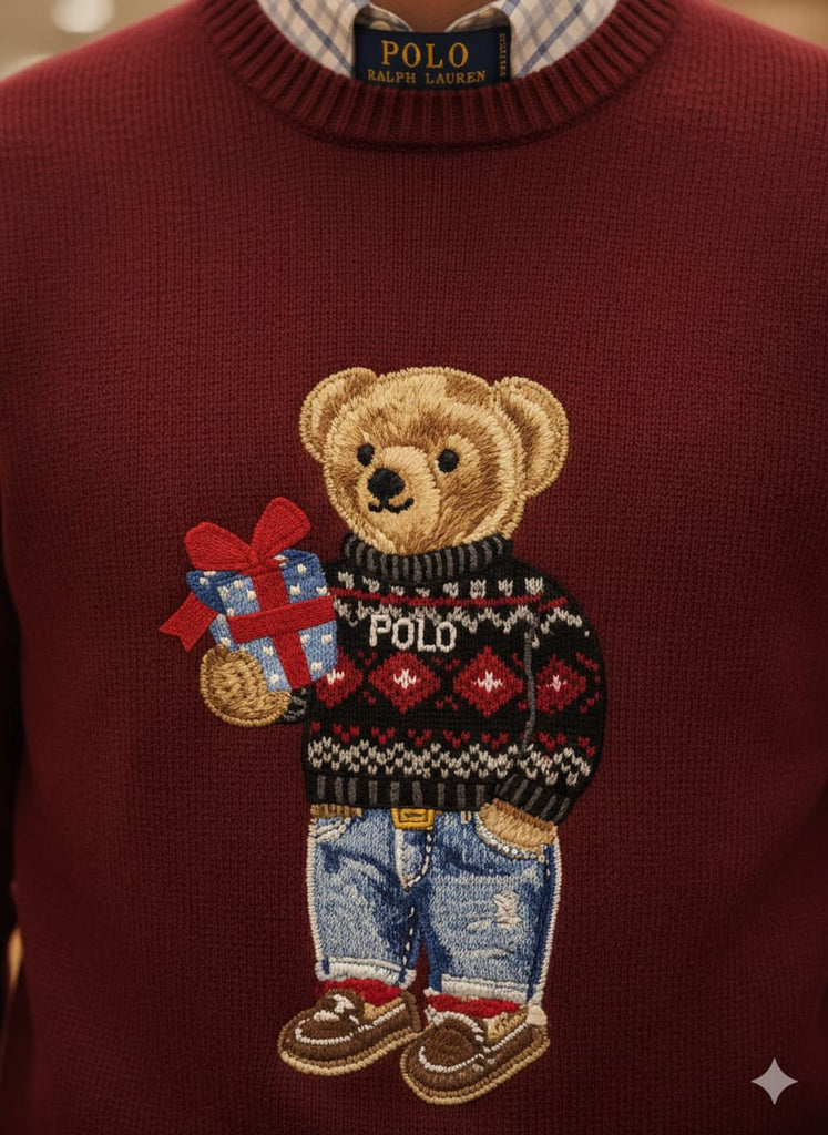 Rich maroon color with cute teddy bear design on front