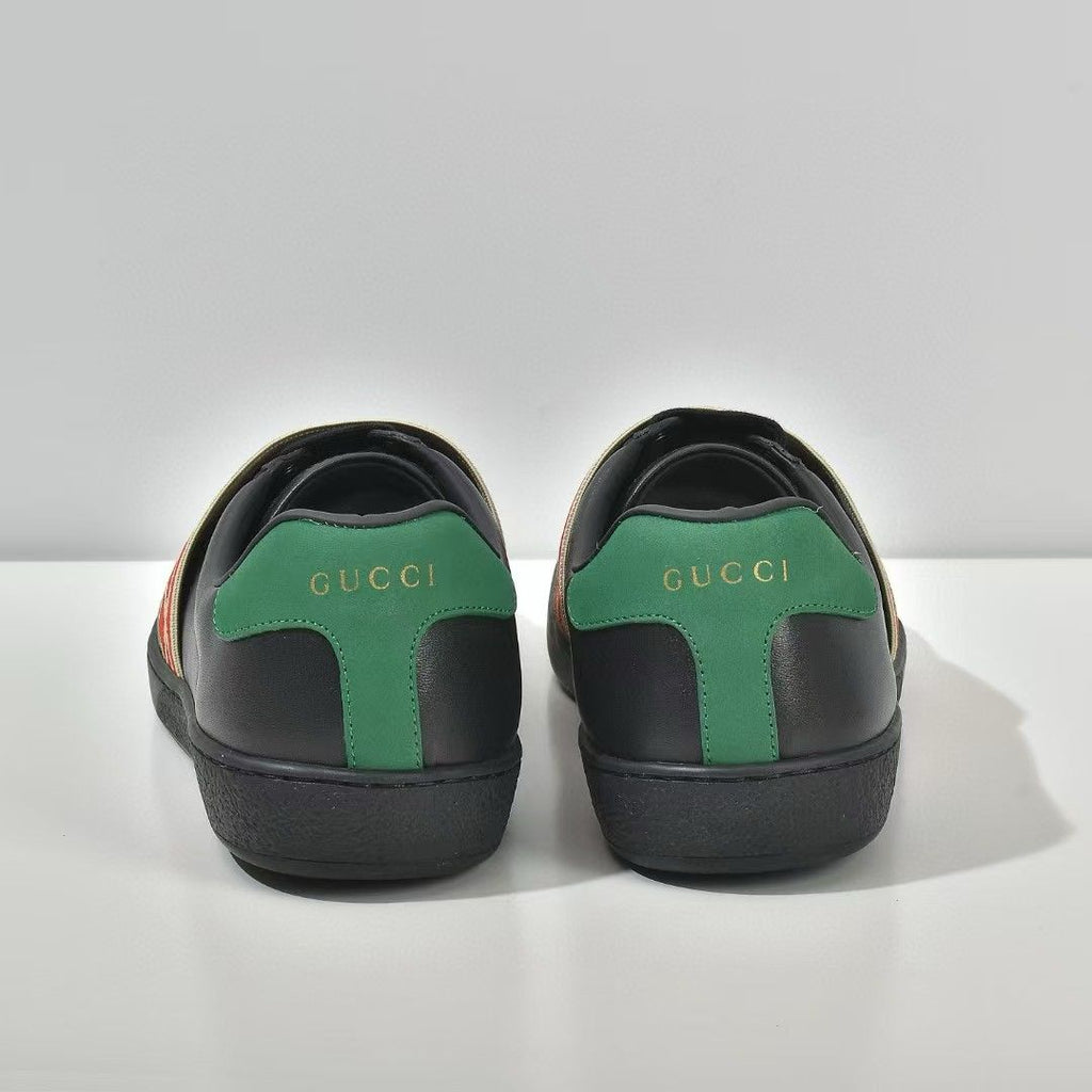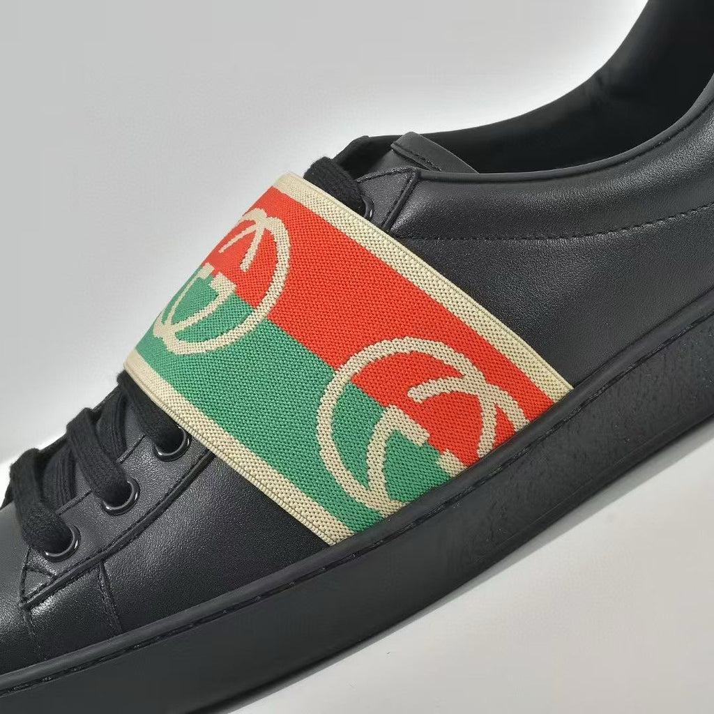Luxury Black Leather Ace Web Low Top Sneakers