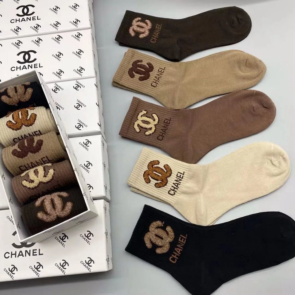 Luxury Designer-Style Cotton Crew Socks Premium Logo Pattern (Pack of 5)