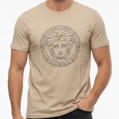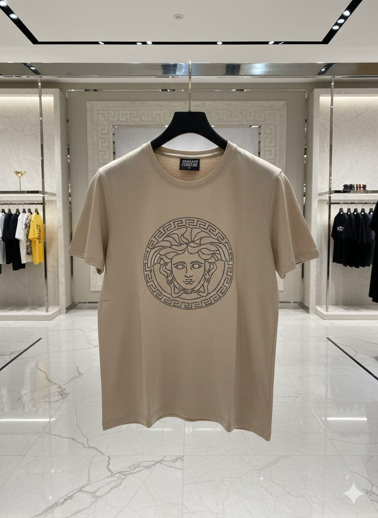 Premium Luxury Beige Graphic T-Shirt – High-End Minimal Emblem Design