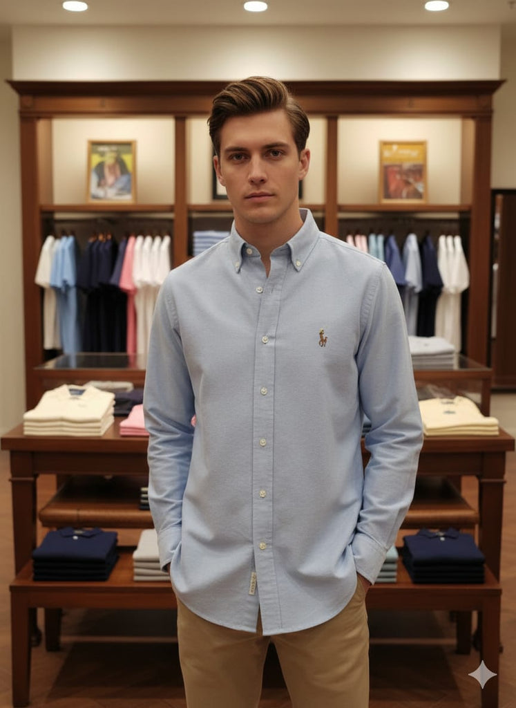 Classic Sky Blue Button-Down Cotton Shirt