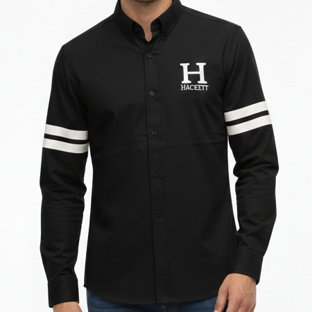 Men’s Premium Black Shirt with Sporty Sleeve Stripes