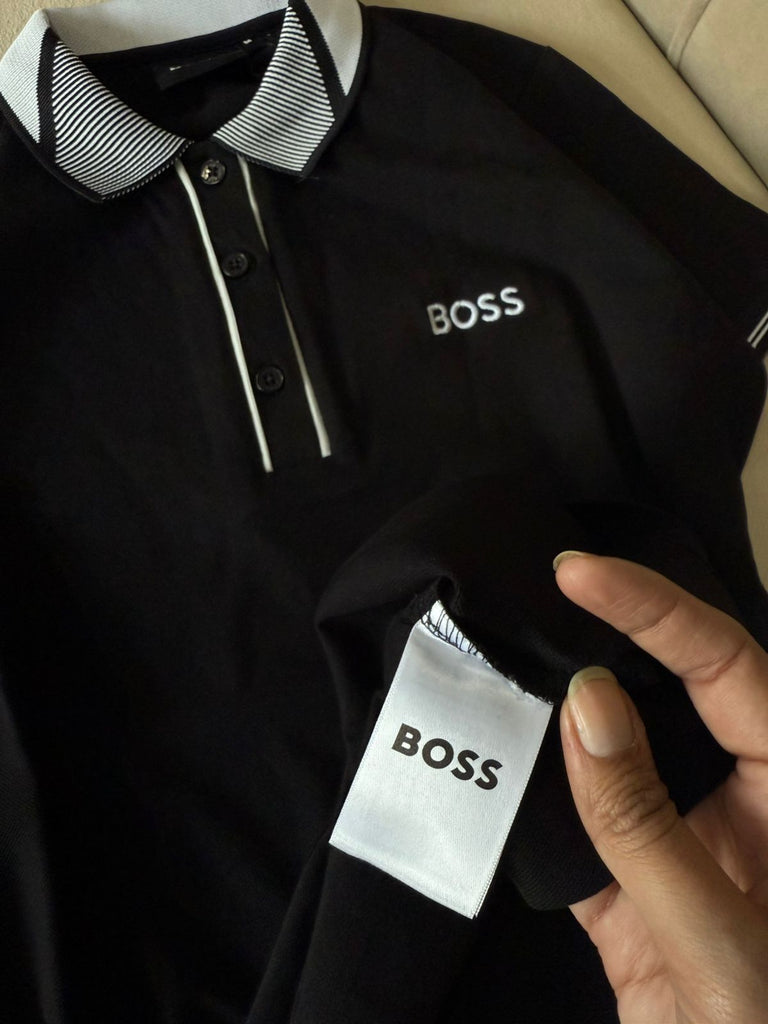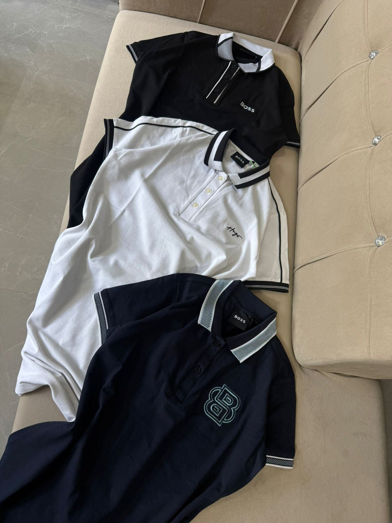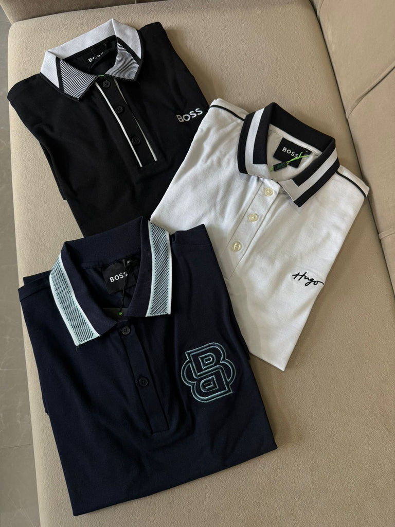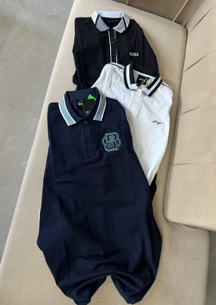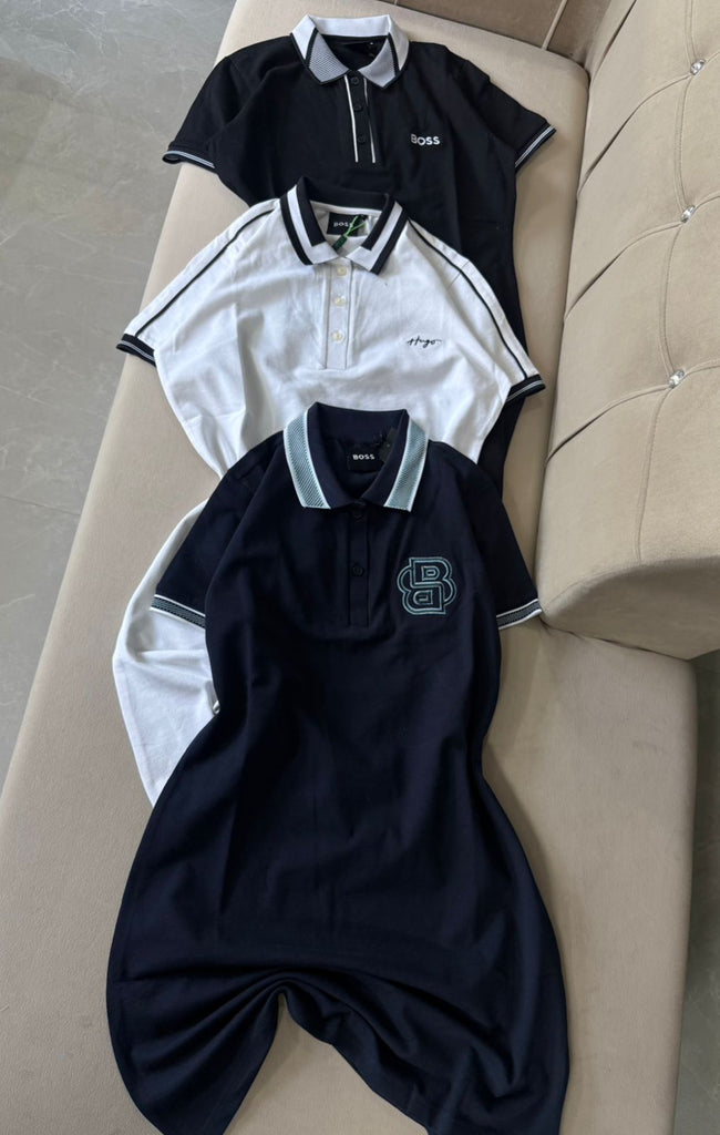 • Polo collar with button neck for a classy look