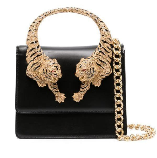 Tiger Handle  Crystal-Embellished Shoulder Bag