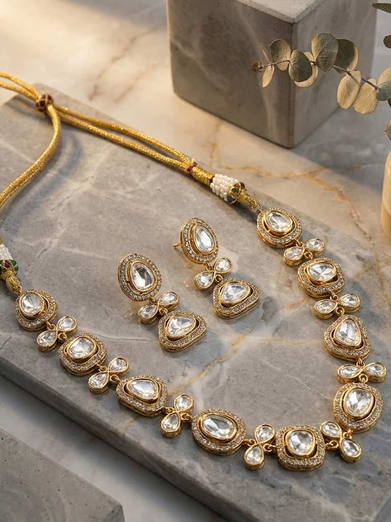 Classic Polki Necklace Set with Sparkling Moissanite Stones