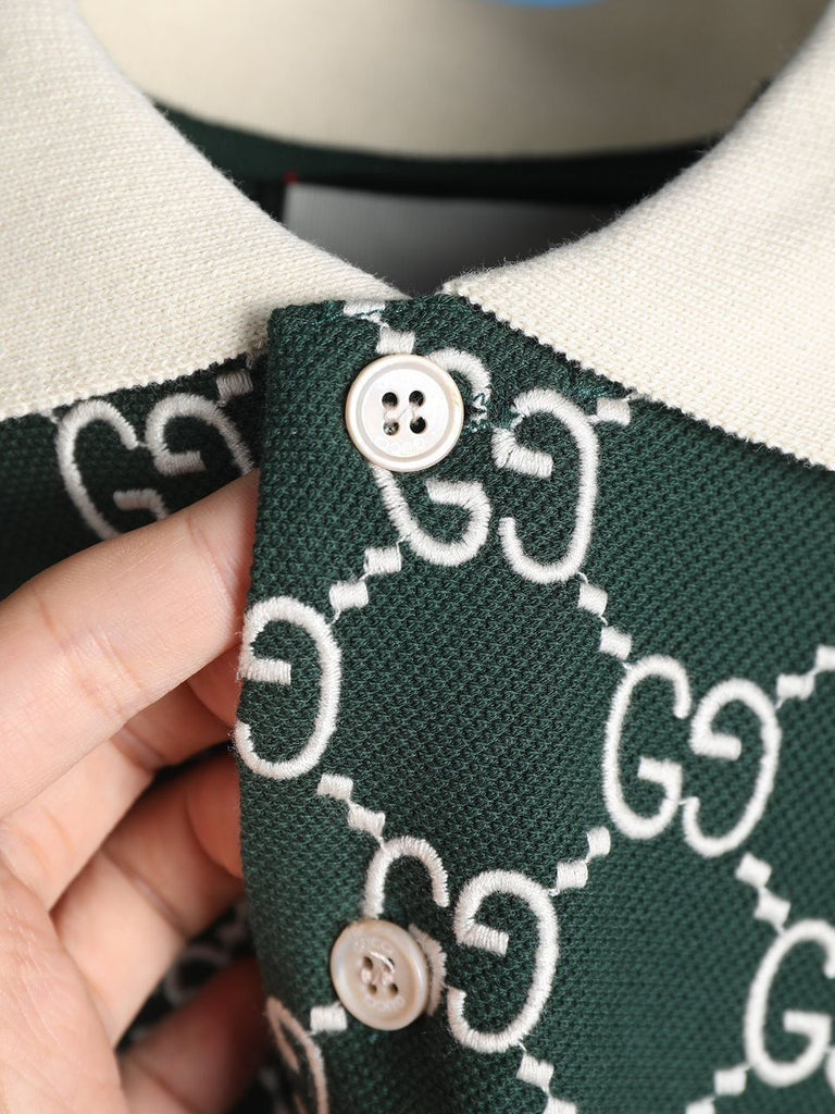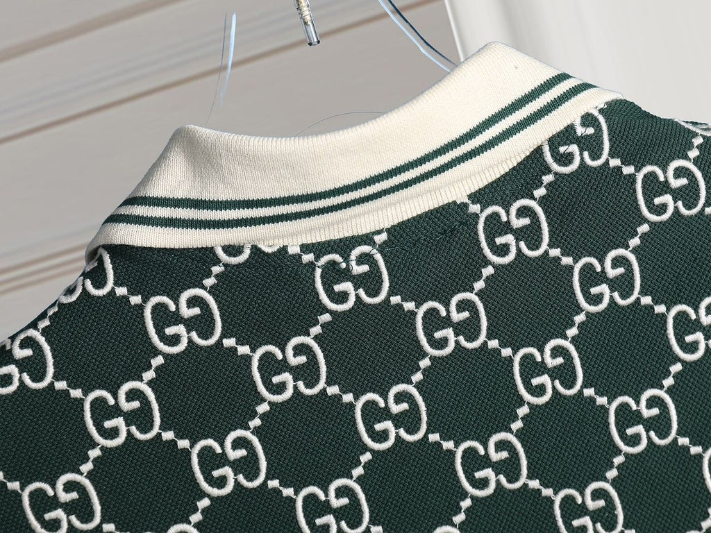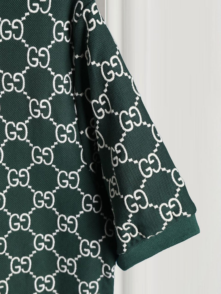 Premium Green Monogram Polo T-Shirt Designer Style, Classic Collar, Regular Fit