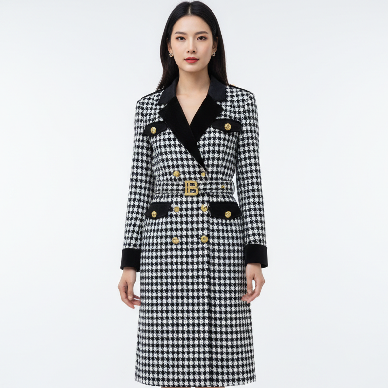 Gold-tone buttons add a luxury touch