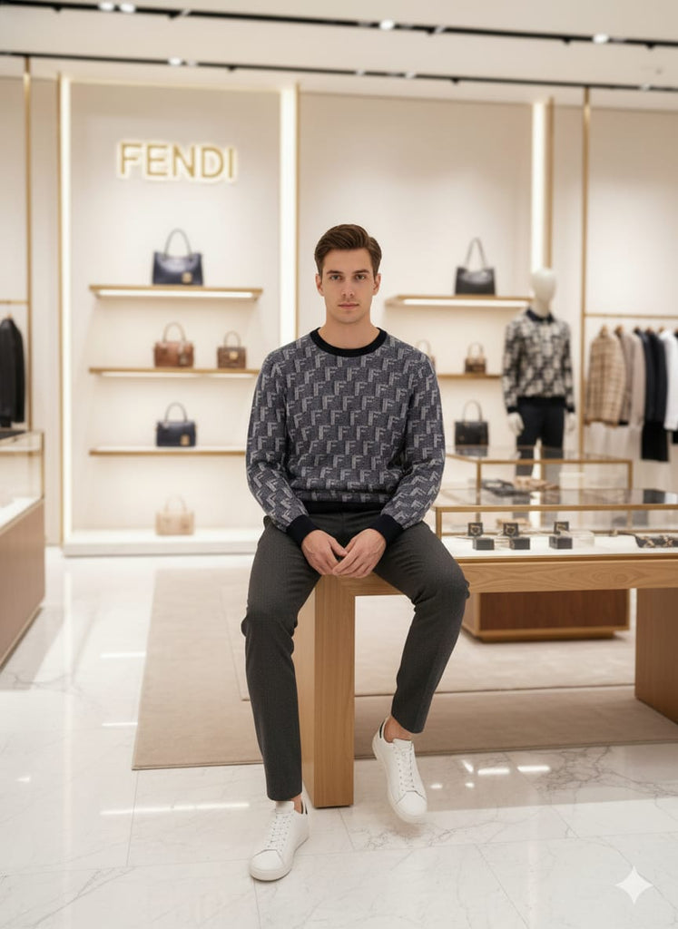 - This sophisticated pullover showcases a modern monogram design, blending timeless style with everyday comfort.