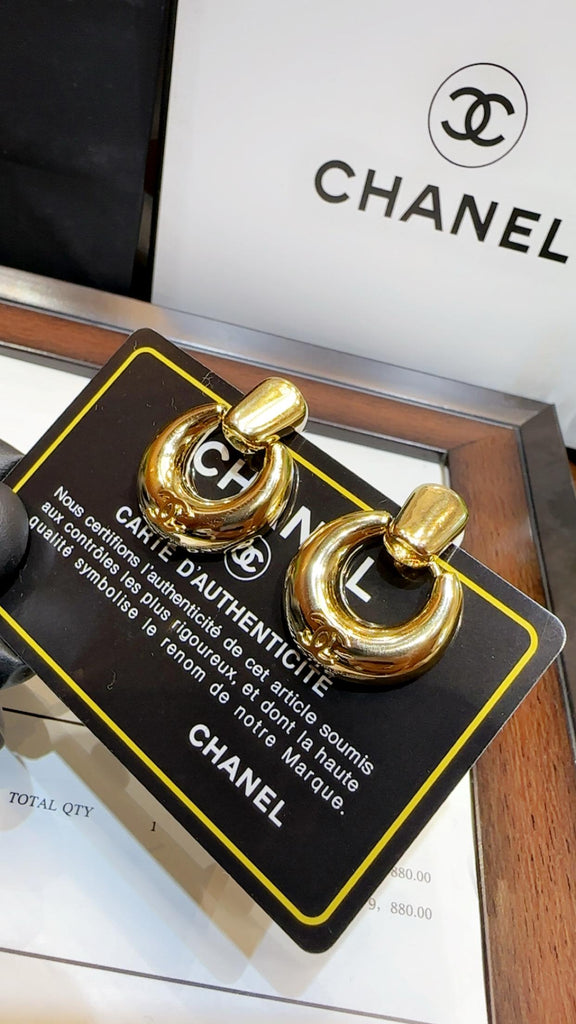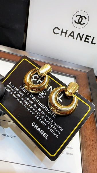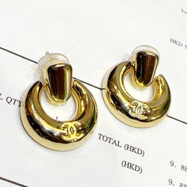 Premium Gold Tone Cc Small Doorknocker Earrings
