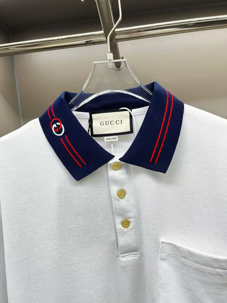 Premium White Piquet Polo with Interlocking GG T-shirt